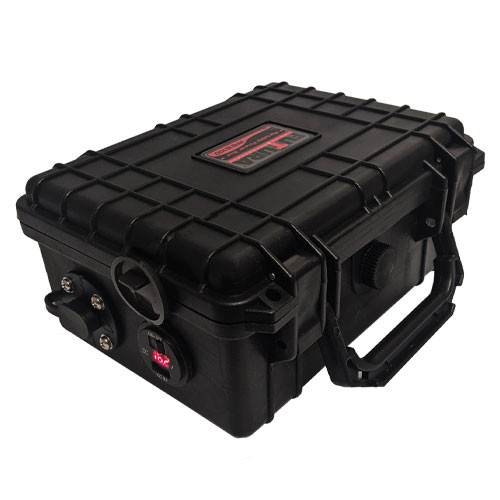 The rugged pelican case is only 9 x 7.5 x 4 inches and weighs only 3.7 lbs. It is small enough to fit into a backpack or carry it with the built in handle.