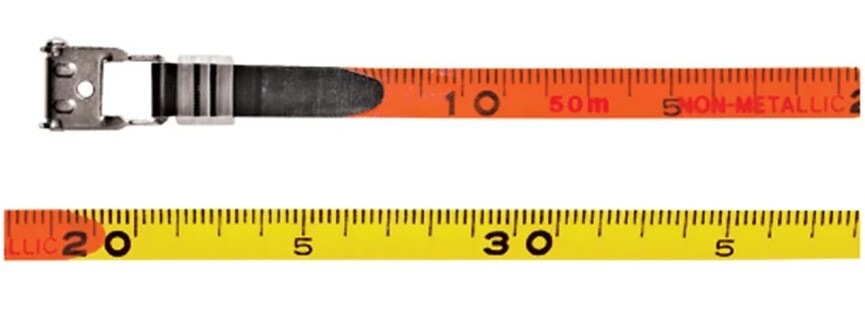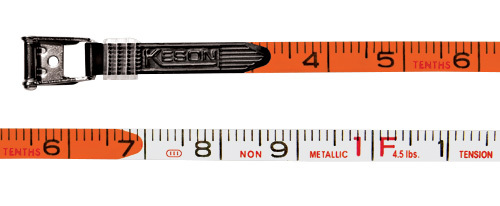 A Keson best seller! Since 1968 this style of Keson fiberglass tape has been providing customers with accurate measurements. They are used in the harshest conditions in which people measure, and they stand to the only test that matters: field performance. We cover each blade with two coats of PVC, one to bind the fiberglass strands and a second over the printed units, so the numbers don’t wear away. An additional orange blade shield adds strength to the end of the blade.