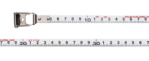 A Keson best seller! Since 1968 this style of Keson steel tape has been providing customers with accurate measurements. They are used in the harshest conditions in which people measure, and they stand to the only test that matters: field performance. The nylon-coated steel tapes are constructed with a double layered .2mm nylon, permanently bonded over a center core of 9.5mm steel. Our multi-layer construction assures corrosion resistance (even to salt water) and provides at least three times the usual tape life.