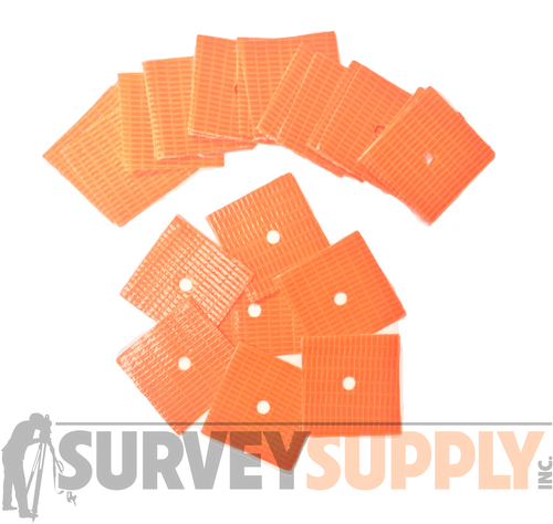 Made of fluorescent red/orange vinyl-impregnated nylon fabric, these Square Survey Nail Markers are so tough they are almost impossible to tear. Measuring 1" square with an 1/8" hole for your nail.