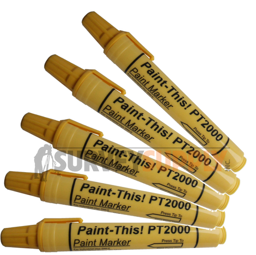 Our yellow paint markers are our own unique design with our own unique paint formula designed to impart distinct colors on most surfaces. Our larger size is easier to hold and our bright colored barrel is easy to find.