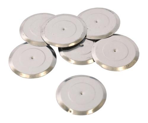 Flat shiners are 2.25-inches (57-mm) OD, punched in the center with crimped edges